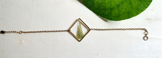 Bracelet remplis d'une feuille de Fougère séchées puis découpées puis