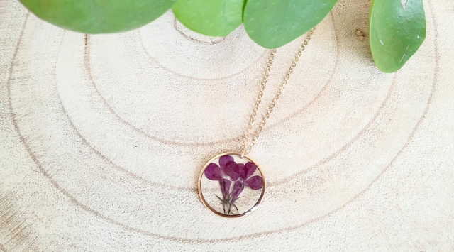 Collier en acier inoxydable avec sa jolie fleur de Lobélie érine.
